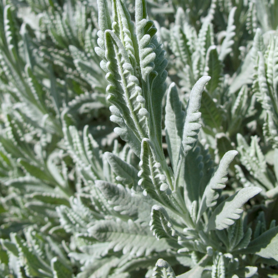 We love 'Goodwin Creek Grey' for the combination of wonderful silver foliage and its deep blue flowers. Plus, the foliage is perfect for shaping into a topiary or border plant.