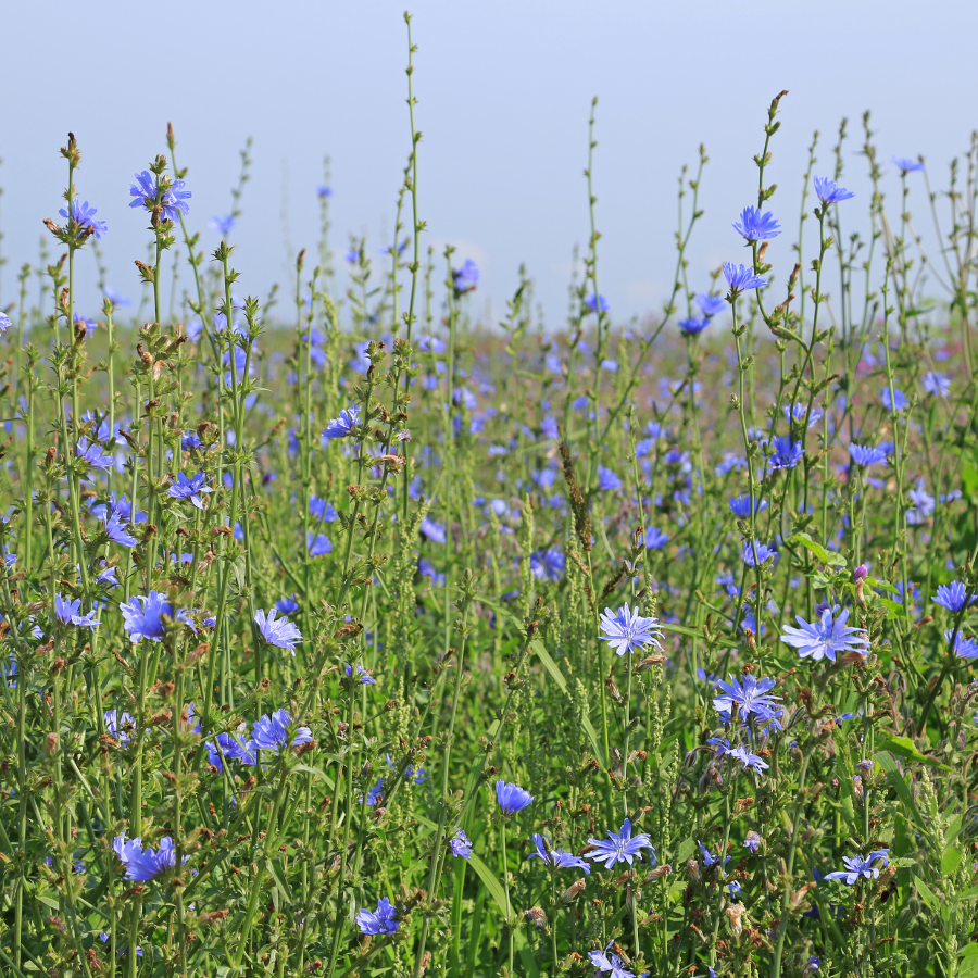 Chicory is a hardy and adaptable plant that can be a great addition to any garden. It grows best in full sun and well-drained soil but can tolerate dry conditions once established. It is a tall plant that can grow up to three feet, with sparsely spaced, heavily toothed leaves. The beautiful violet-blue flowers, which bloom from June to October, can vary in color depending on their age and sun exposure, and occasionally rare white flowers can be spotted.Â