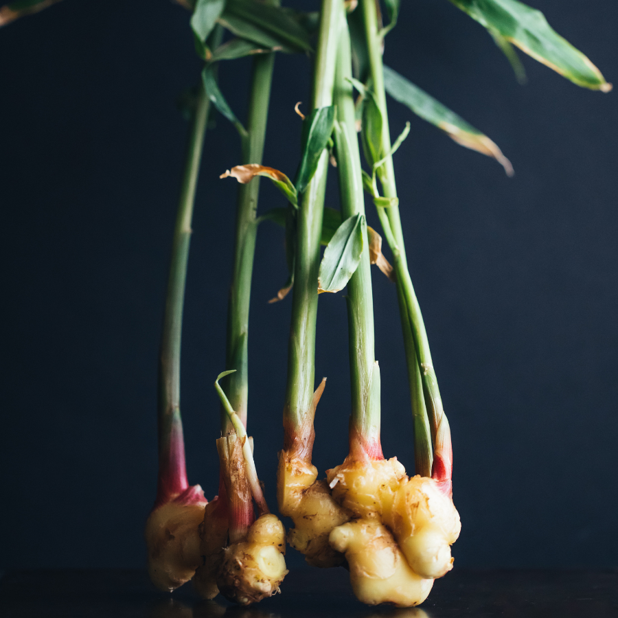 Ginger Plants For SaleZingiber officinale Herb Growing TipsLight:  Full-Partial shade (In cooler climates it will do well in full sun but southern locations may need the part shade) Temperature:  Perennial for Hardiness Zones 8-11 Watering:  It likes moist soil, watering regularly but do not allow the plant to stay wet for too long. Soil: Moist Rich Well Drained Soil Comments:  This plant is looking for heat and humidity due to being a tropical plant. You can plant in the ground if this is your growing conditions year around but container growing is best for customers that get cooler temperatures. If your growing in ground mulching helps keep in warmth and moisture. Herb Description A native to tropical Asia, this rhizomatous perennial herb produces a plump yellow rhizome that is well known for both its medicinal and culinary uses. The flower of this plant is worth the wait, it can take until it's second year of life to bloom. It will take you breath away once it does!