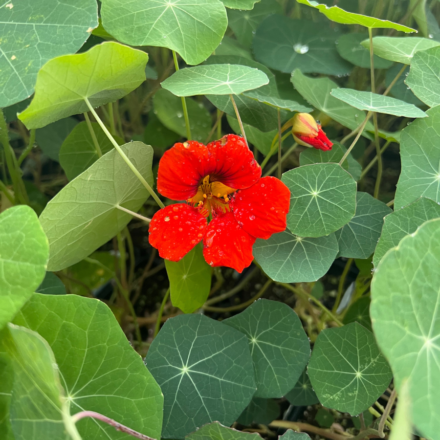 This heirloom is a mounting Nasturtium that is great for baskets growing or just planting in the garden! It's show stopping dark red flowers with dark blue-green leaves will add a pop to any garden. We are proud to offer 'Empress of India' Nasturtium plants for sale.