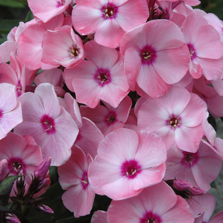 Phlox 'Salmon Orange Dark Eye' is part of the Sweet Summer series®. It is an exquisite and vibrant addition to any garden. With its stunning salmon blooms and dark pink centers, this phlox variety brings a pop of color that will elevate your garden's visual appeal. Not only does it offer a beautiful display, but it also attracts butterflies and serves as a pollinator, making it a valuable asset to any garden ecosystem.
