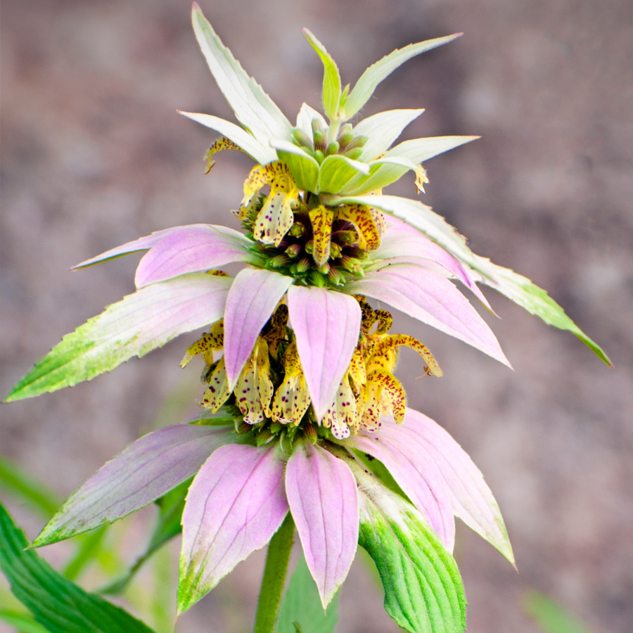 A great addition to any flower herb garden but it also has medicinal purposes. Using the fresh leaves steeped in water can help ease fever and inflammations. This plant has been used to help horses which is why it's also called Spotted Horsemint or Dotted Horsemint.